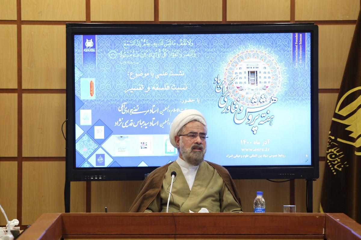 پایگاه اطلاع رسانی اسراء: همزمان با ایام هفته پژوهش، نشست علمی «نسبت فلسفه و تفسیر» سه شنبه ۲۳ آذر ساعت ۱۵ الی ۱۷ در سالن کنفرانس موسسه آموزش عالی اسراء در قم برگزار گردید. در این نشست علمی حجت الاسلام و المسلمین استاد جوادی آملی و حجت الاسلام و المسلمین سید عباس قدیمی نژاد به ایراد سخنرانی پرداختند.
