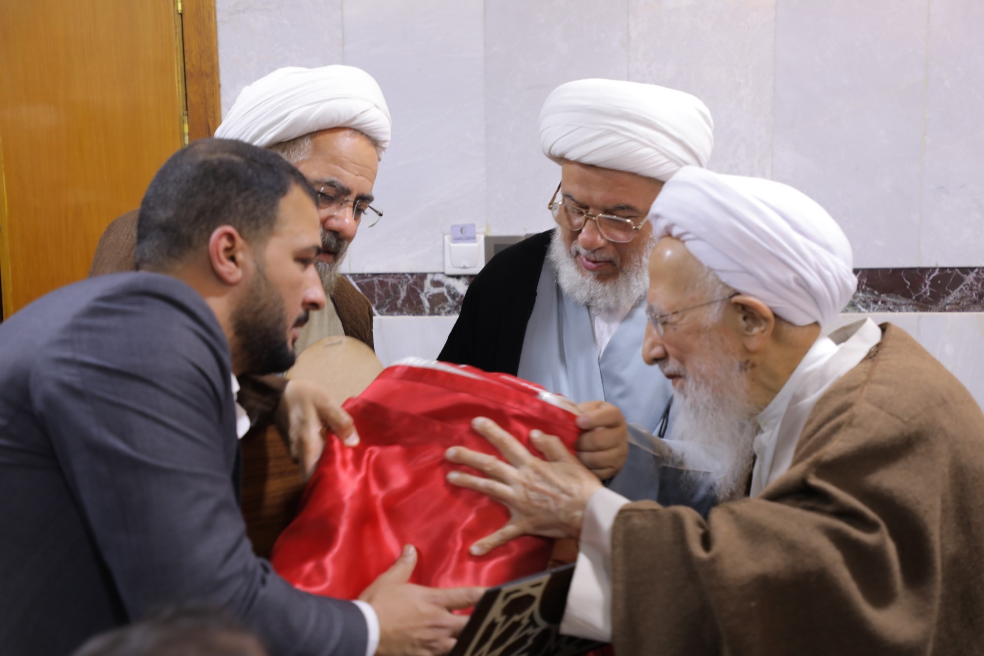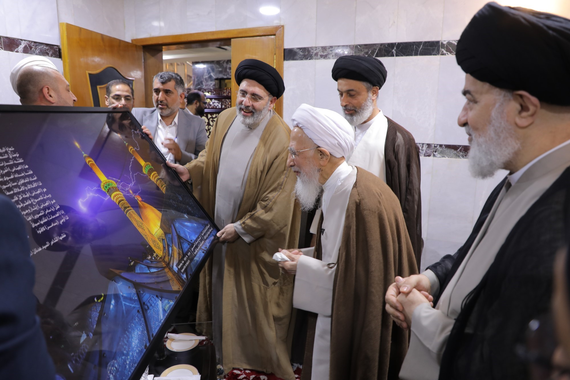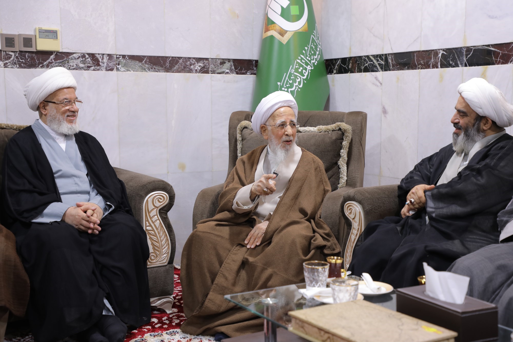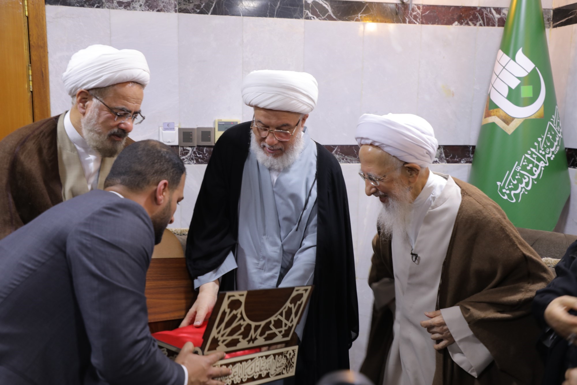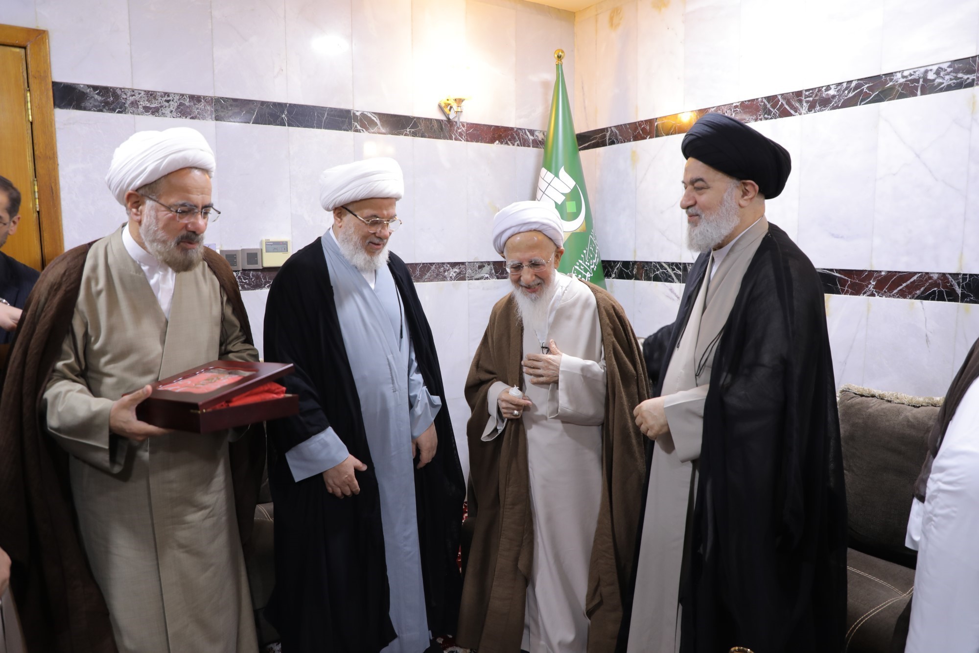 در جریان این دیدارها، پرچم متبرک گنبد مطهر حضرت سیدالشهداء علیهالسلام و پرچم گنبد مطهر حضرت ابوالفضل العباس علیهالسلام به محضر حضرت آیتالله العظمی جوادی آملی اهدا شد.
